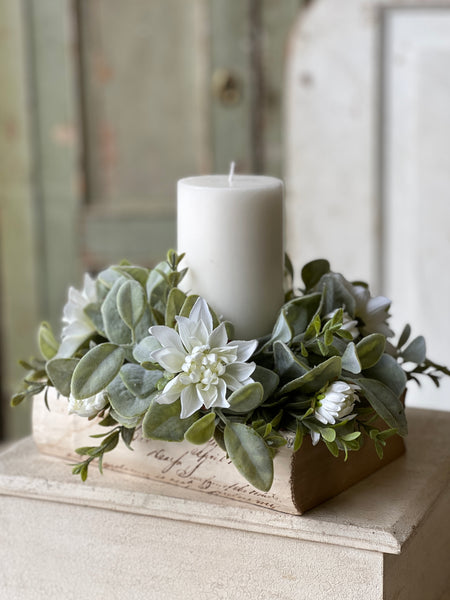 Made from high-quality faux florals, this candle ring offers a lasting and maintenance-free way to bring the beauty of flowers into your home. Perfect for adding a floral touch to your table centerpiece, mantle, or any other area in need of a decorative flourish.