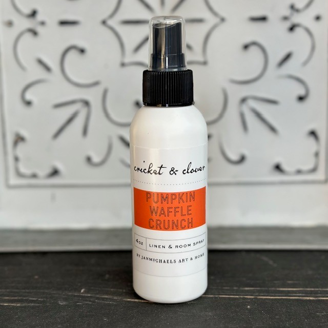 Each Cricket and Clover Room and Linen Spray is handmade in small batches in Lancaster, PA. Freshen up any room or linen with our handmade scents. This is just one more way of enjoying our preferred candle aromas, but in a flameless way. A burst of freshness is guaranteed with each spray from the 4oz bottle.