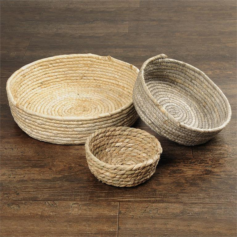 Set of 3 Corn Husk Rope Basket Trays